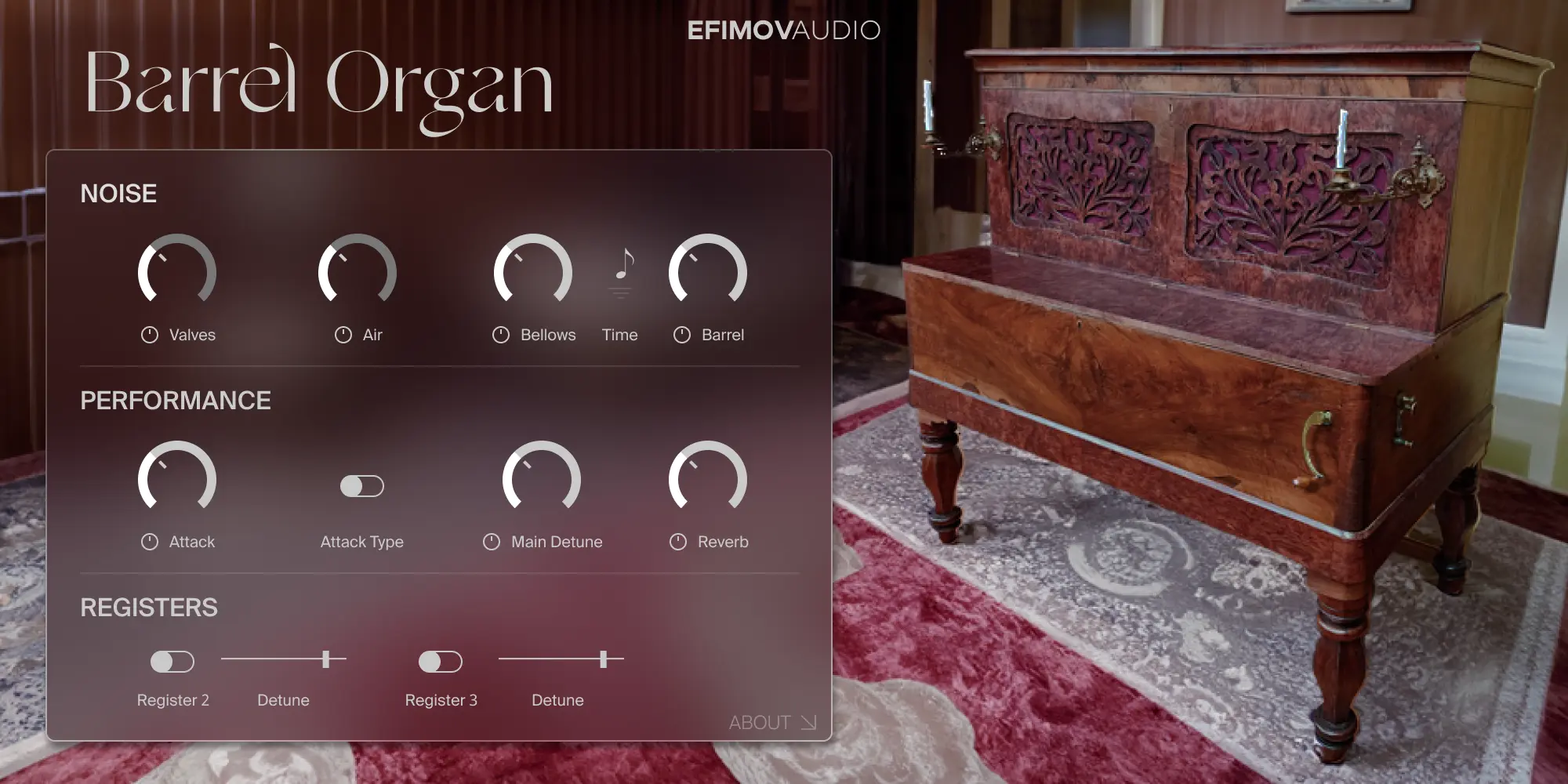 By design it resembles a large antique street-organ which had a wooden barrel inside it covered with hundreds of metal staples.