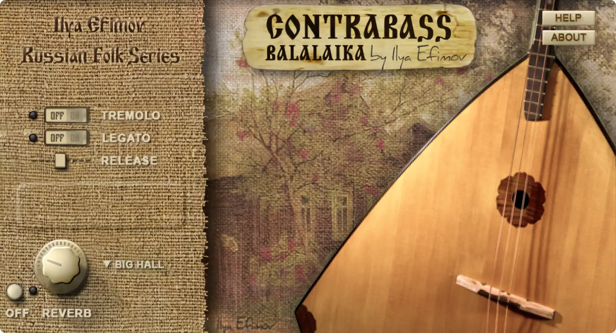 The largest in family by size, Contrabass Balalaika produces the lowest and most powerful sound. Creating this equivalent of an upright bass we endowed it with all features of the real instrument, including alternate stroke and tremolo.