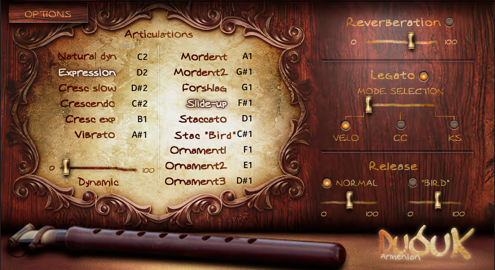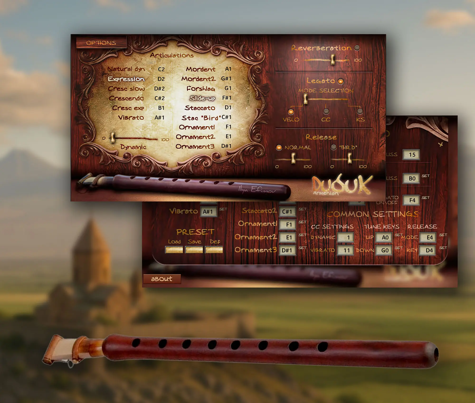 The Duduk is a traditional Armenian woodwind instrument, used in a variety of genres to depict mournful moods. We sampled a real duduk made in Armenia, collaborating with a skilled Armenian player, to bring you such versatile instrument, tamed and ready to serve in your virtual studio.