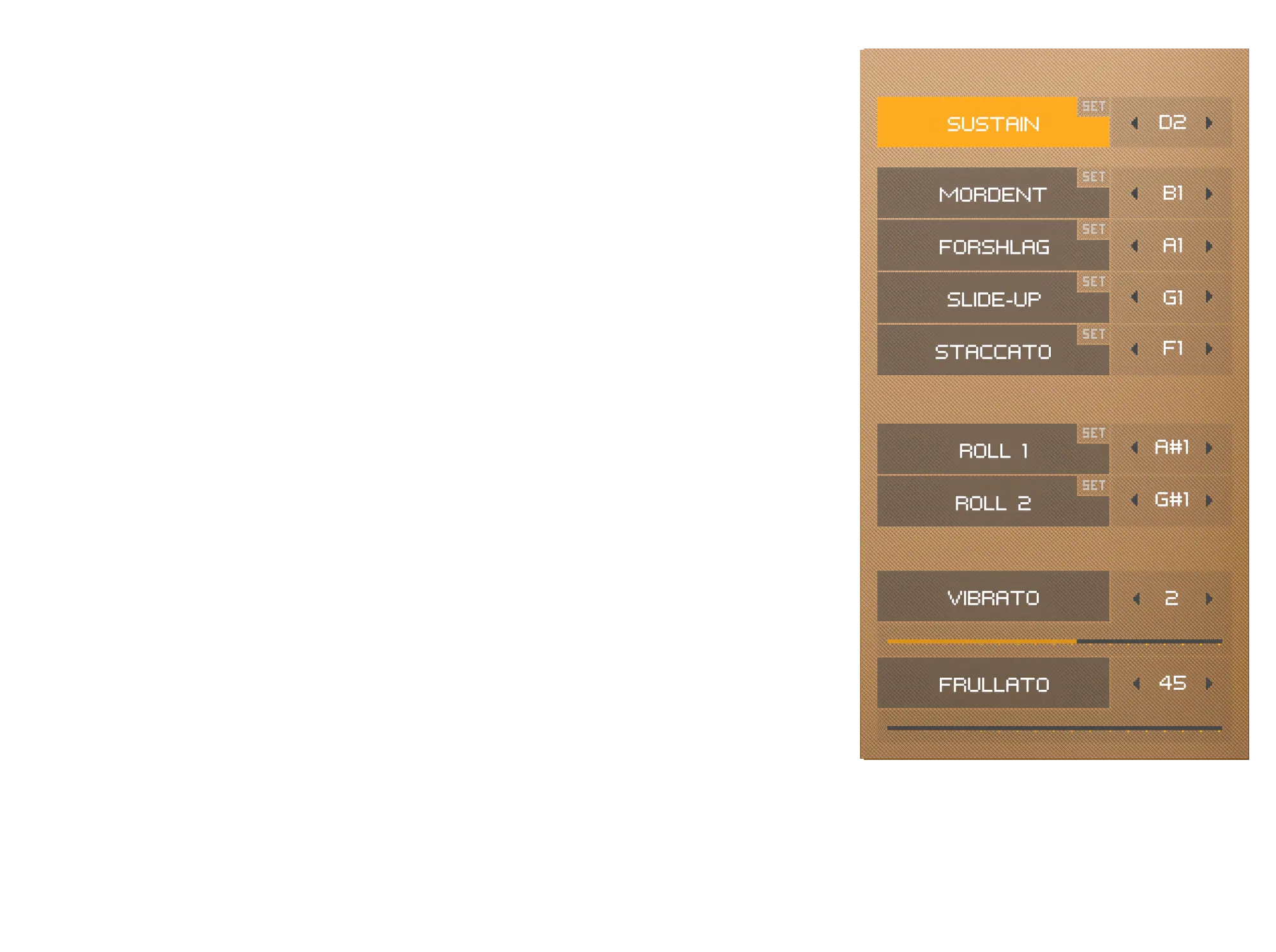 - Control of realistic vibrato and frullato