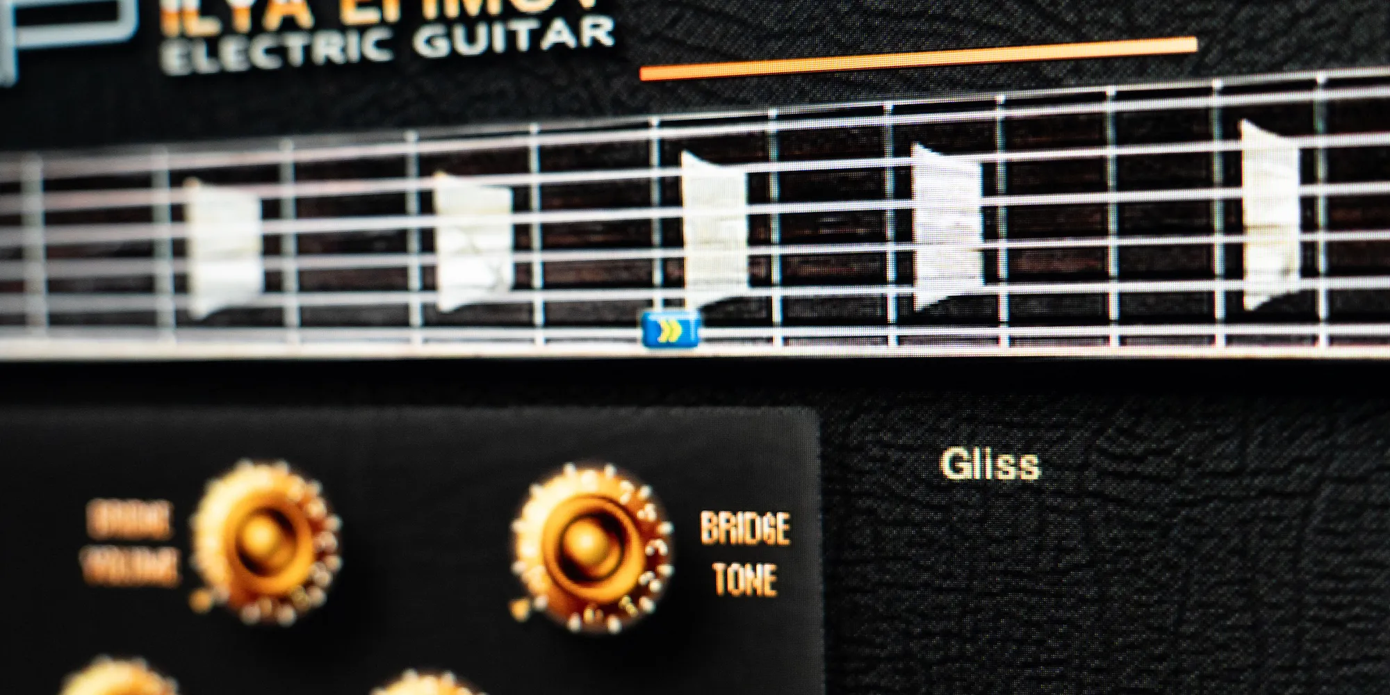 Smart transitions from note to note are adjustable depending on velocity, direction, and position. Includes all possible glissando intervals pre-recorded per string.