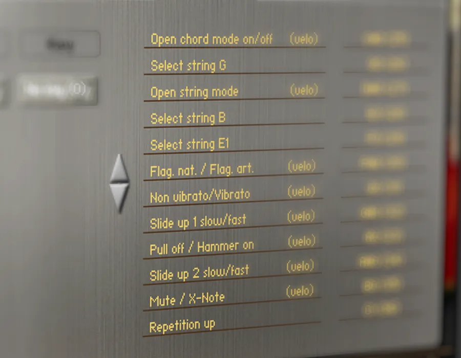 - 12 velocity layers for each notes\23 frets on the each string w ith around-robin algorithm.
