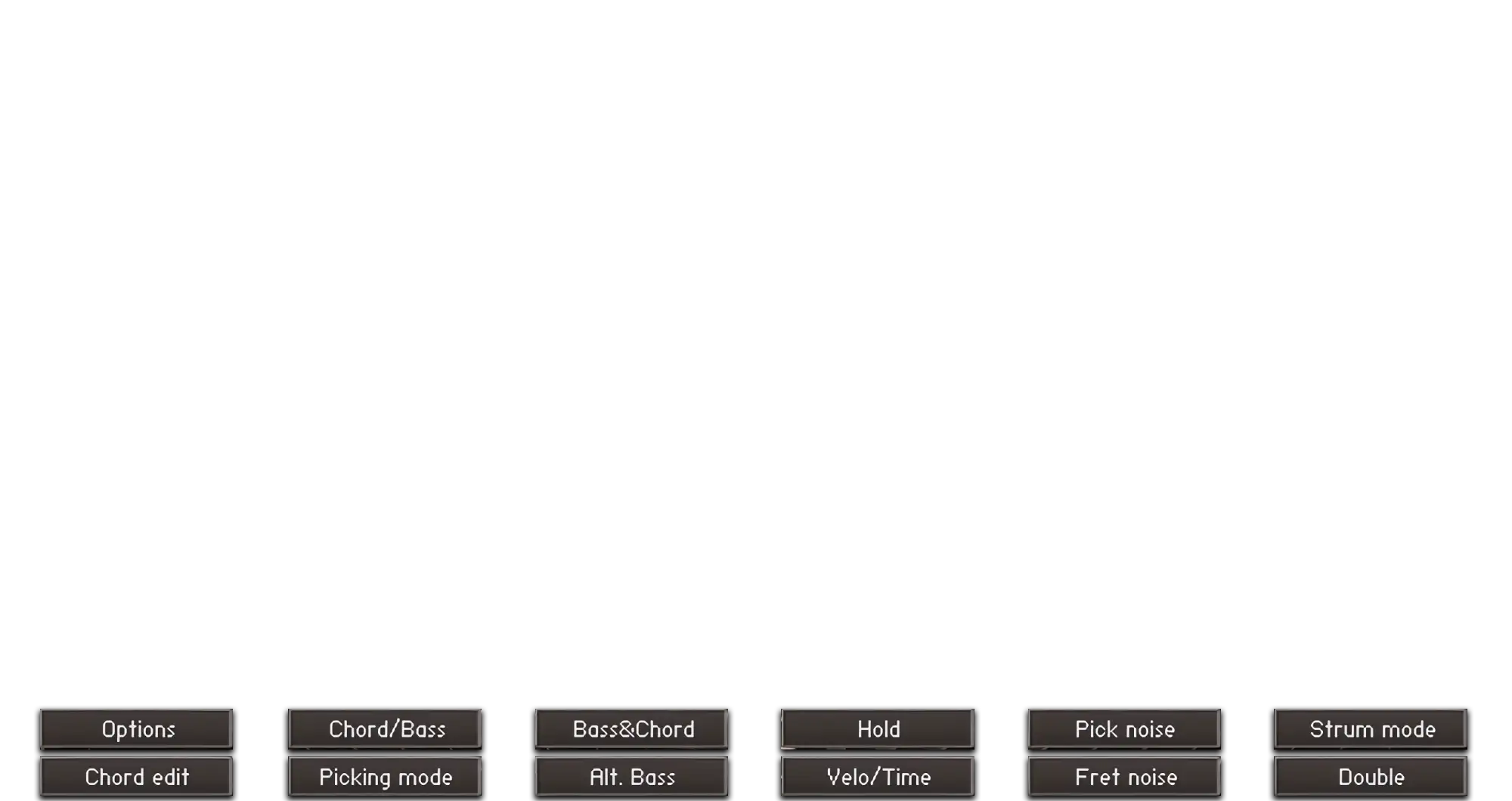 Replay the last triggered note or chord. One key plays a down stroke, the other an up stroke, with subtle variation in timing, velocity, and pick noise. This allows you to simulate rhythmic comping, tremolo, or manual strumming without reprogramming full phrases. Repeats are also take into consideration a previous articulation or chord voicing.