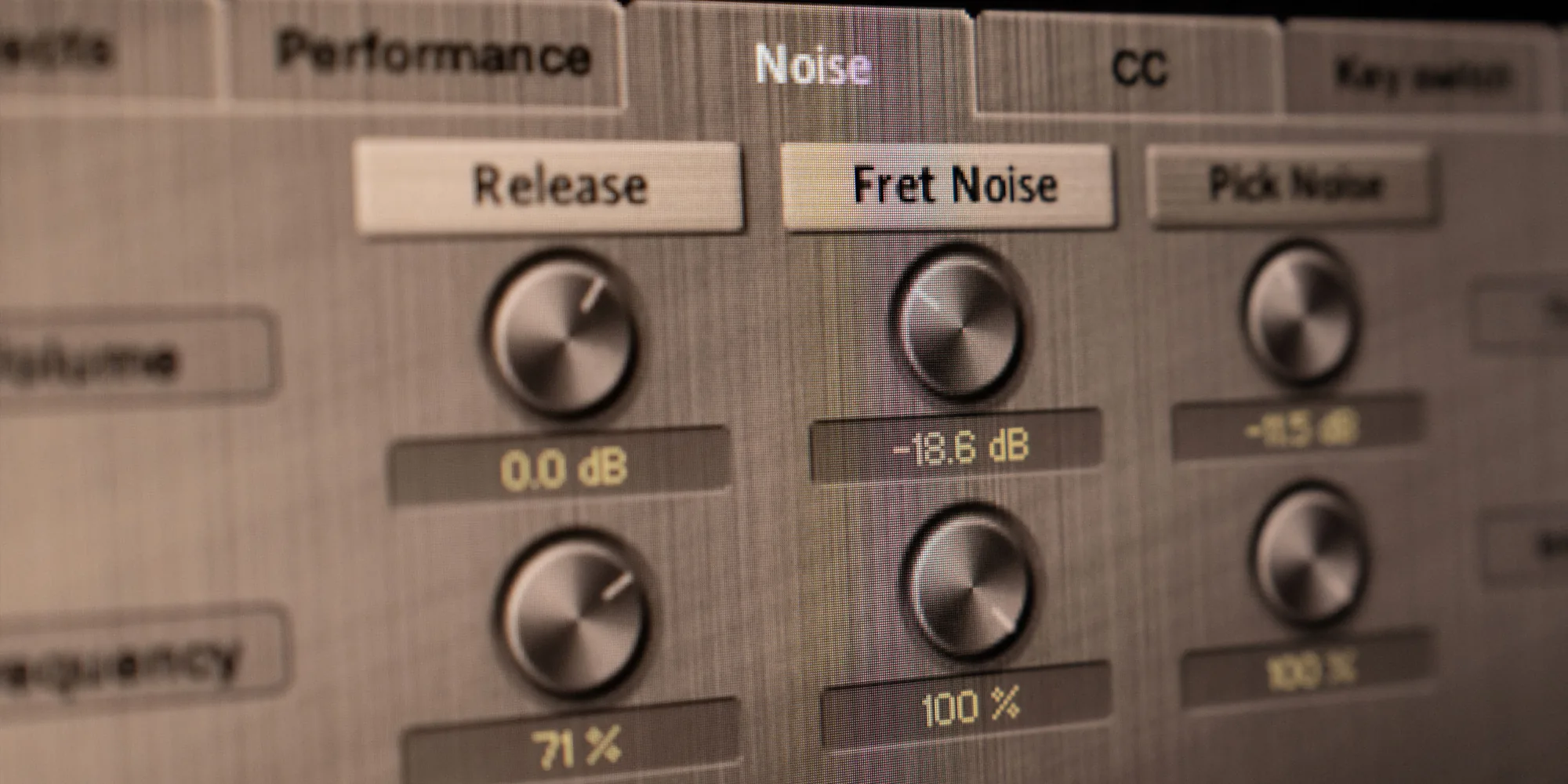 Natural guitar noises like pick sounds, fret movement, string release, and finger pressure are captured and layered into performance. You can adjust their volume, appearance frequency, and randomness. These noises give the impression of a live player and eliminate the mechanical feel of MIDI-driven samples. You can also disable any noise for a cleaner studio tone.